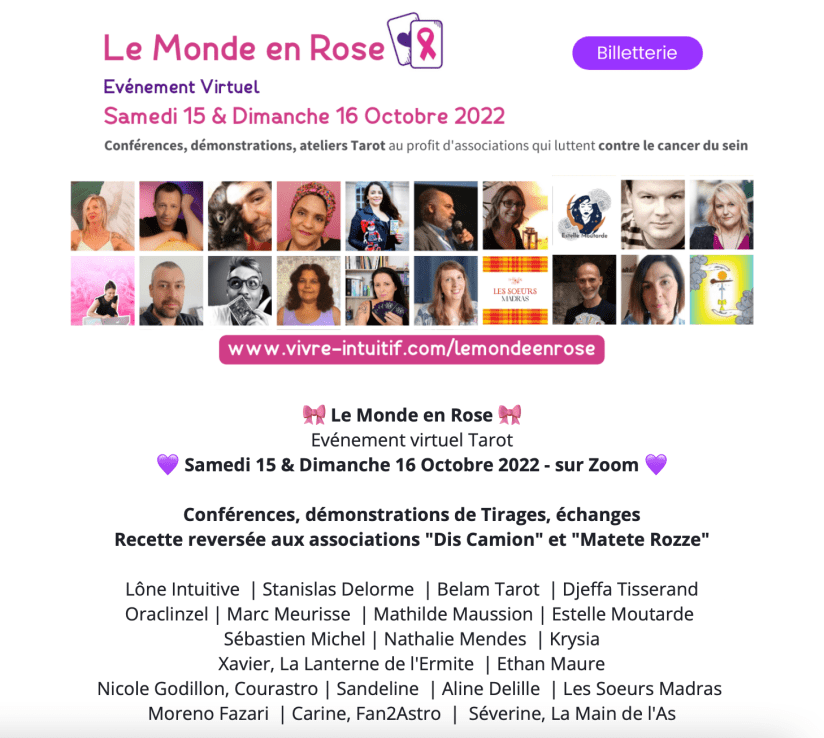 Comme certains le savent, en octobre 2022, j’ai participé à un évènement virtuel « le monde en rose » organisé par Aline Delille de « vivre-intuitif ».
